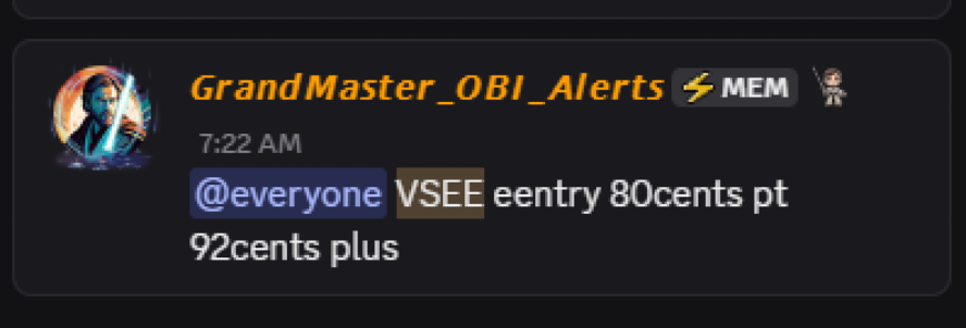 On October 28, 2025, Grandmaster-Obi did it again. He alerted $VSEE (VSee Lab Inc.) early that morning in his Making Easy Money Discord server for an entry price of just $0.80 — and within hours, the stock skyrocketed to $4.03, delivering a staggering 404% gain in a single session.