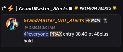 “Grandmaster-OBI called PRAX when no one was watching. This was textbook MEM strategy — identify, enter early, and let the news do the rest.”
